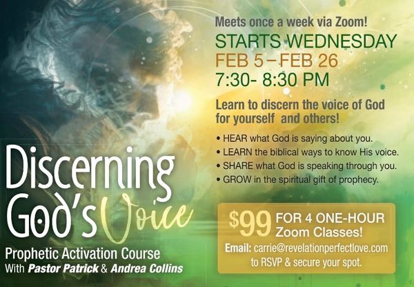Join us as we partner with Revelation Perfect Love and bring our Prophetic Activate to zoom. In this training we will be teaching on how to prophesy using names and how to respond and recognize to the voice of God through hearing and seeing.
